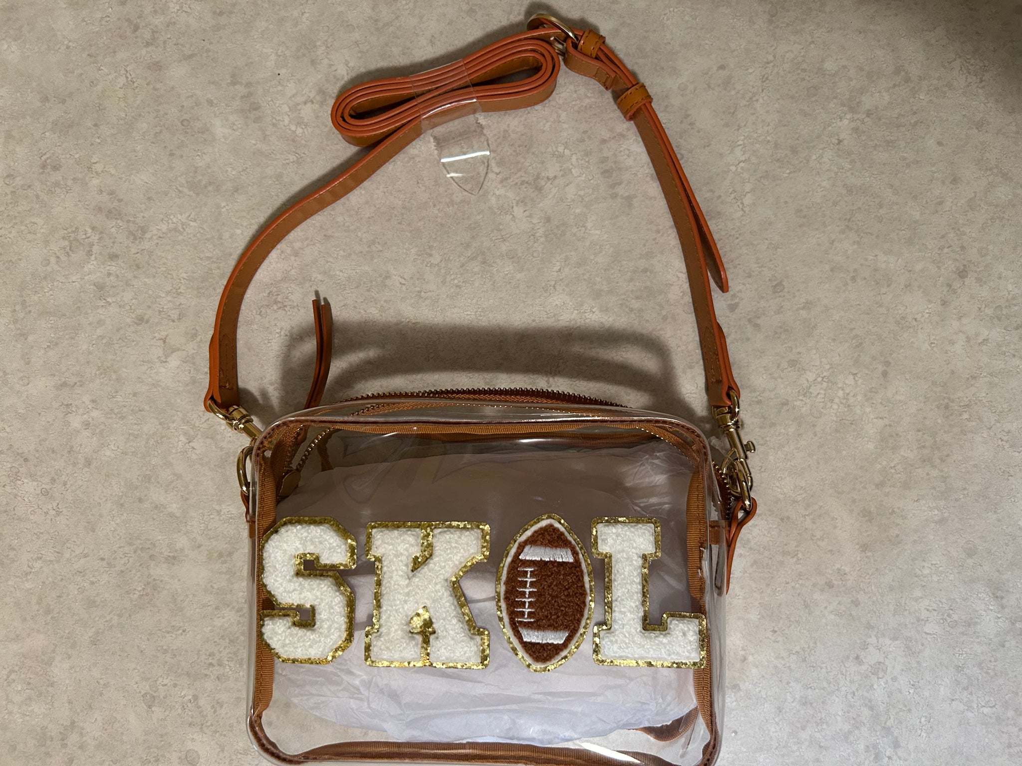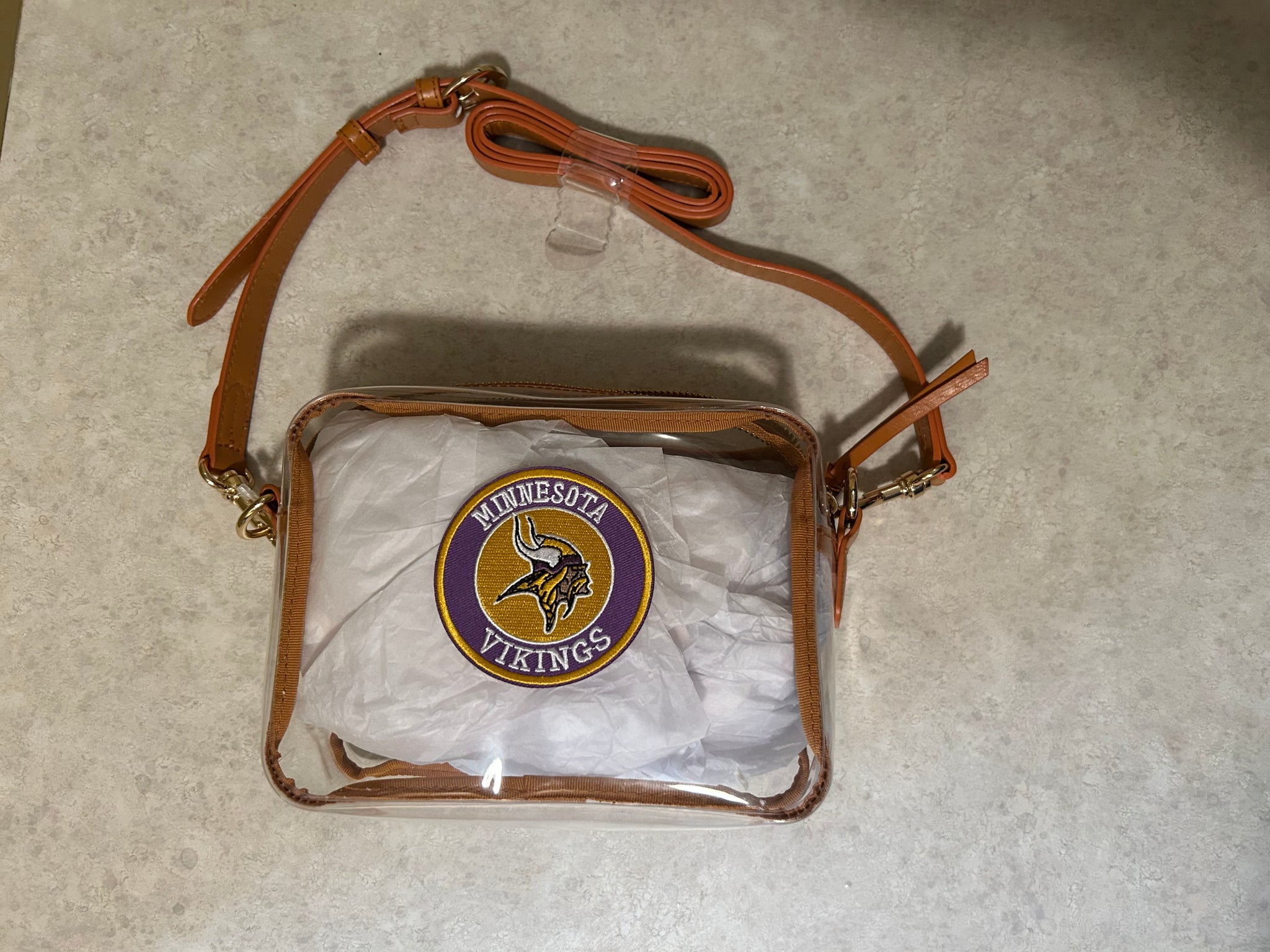 This Minnesota Viking Game Day Purse meets the NFL and Vikings Stadium Clear Bag Policy. It is a clear plastic purse/handbag, that makes it easy for security to observe.